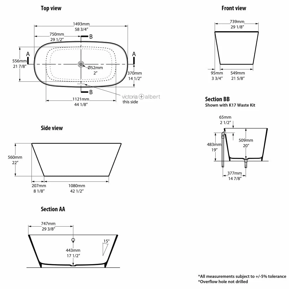 Victoria & Albert Vetralla 1500 freistehende Badewanne