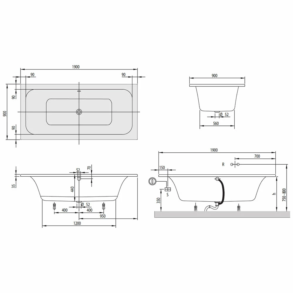 Villeroy & Boch Loop & Friends Square Duo Rechteckwanne 190 x 90 cm