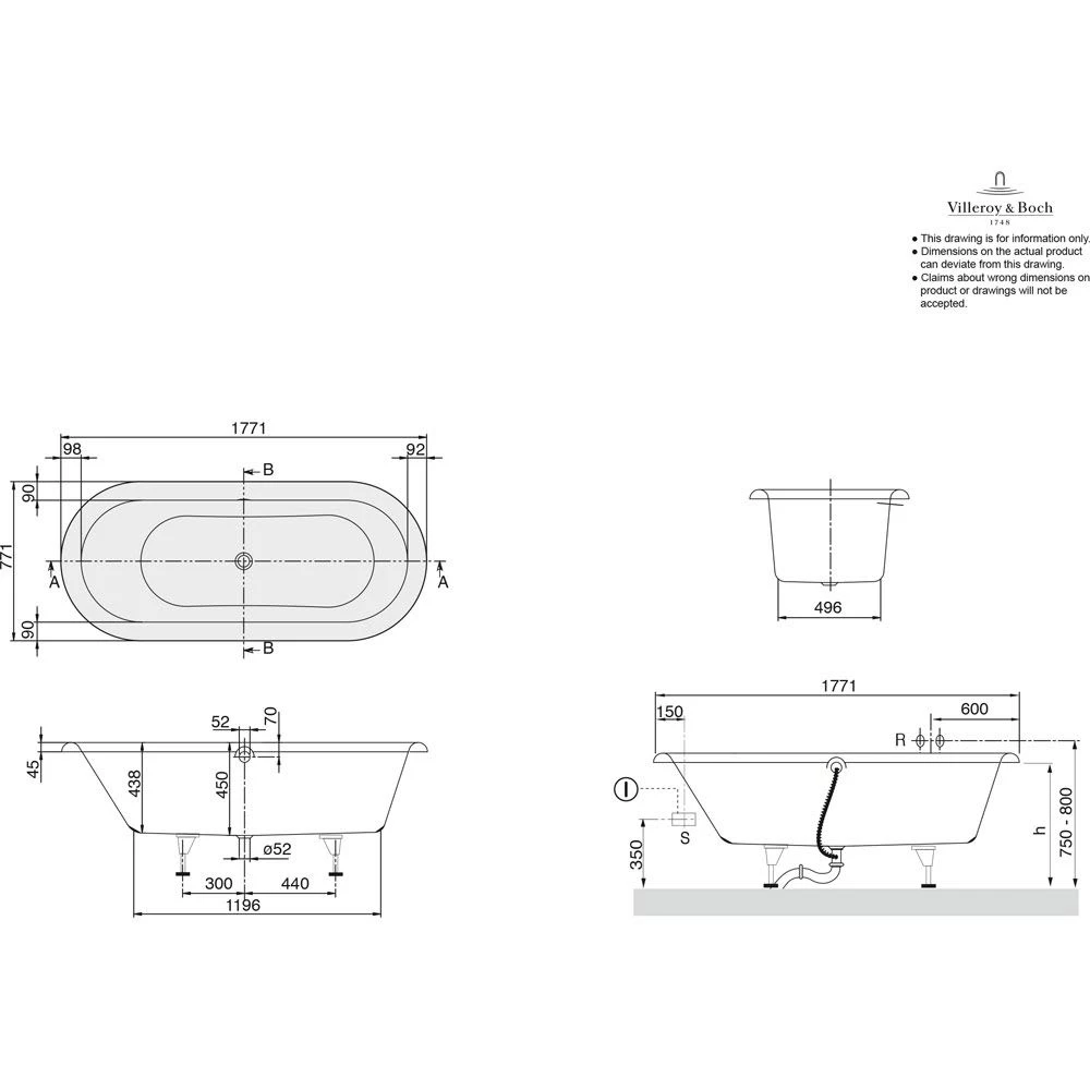 Villeroy & Boch Nexus Duo Oval-Badewanne 177,1 x 77,1 cm