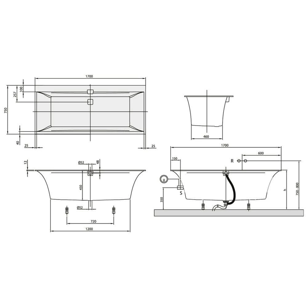 - Inklusive Wannenfüße (selbstklebend), Verstellbereich: 13-18 cm