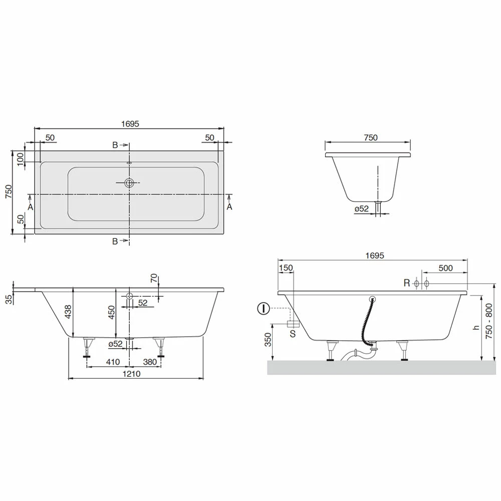 - Bei der Montage können Sie sich für Wannenfüße oder einen Wannenträger entscheiden.