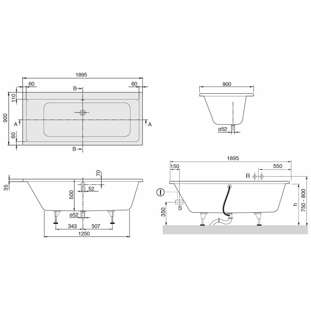 Kaldewei Classic Duo 114 Badewanne 190 X 90 Cm Inkl. Schwalleinlauf Mit Integriertem Überlauf