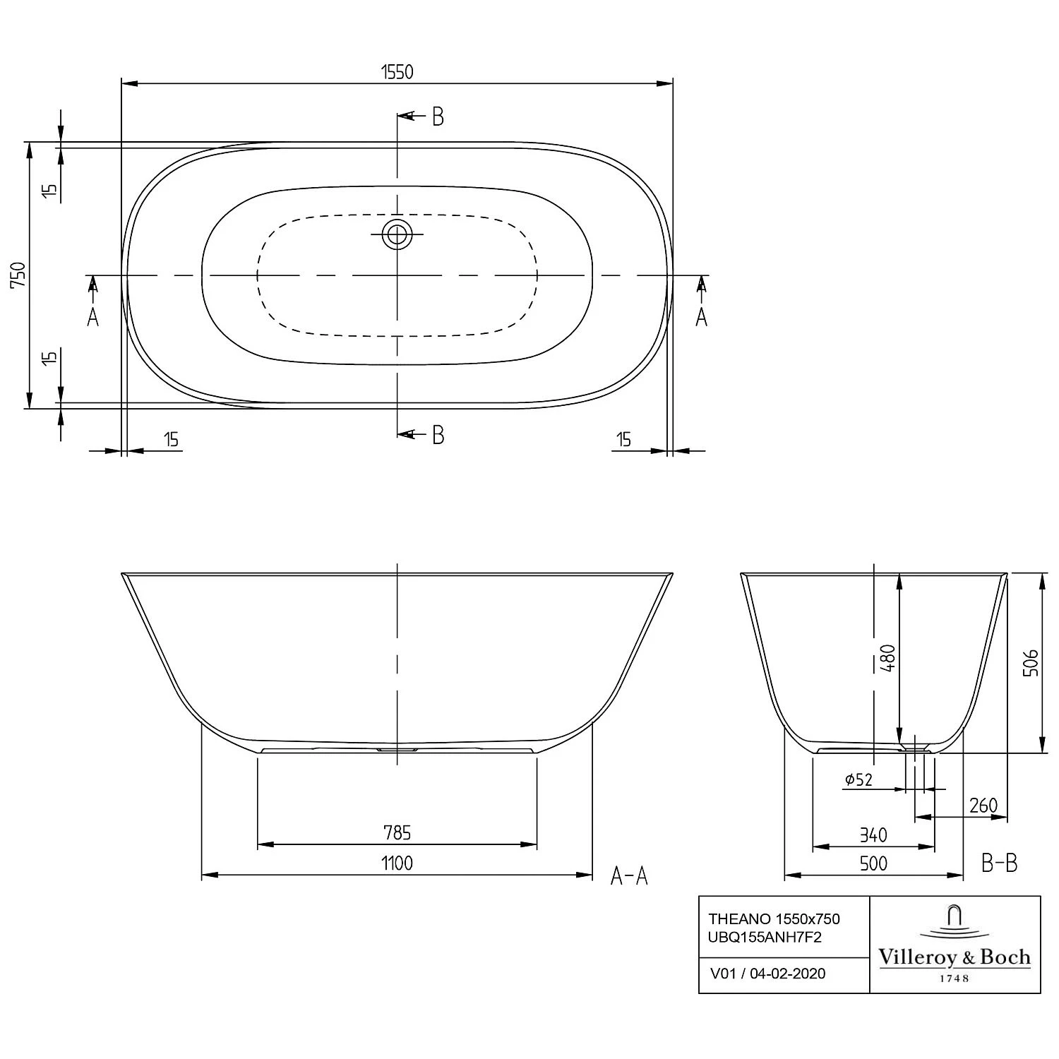 Villeroy & Boch Theano freistehende Badewanne 155 x 75 cm